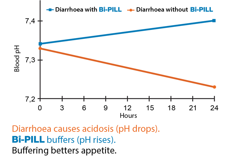 Give a Bi-PILL® when diarrhoea is diagnosed, 1 pill immediately and 1 pill each after the next 3 meals. Have Bi-PILL® available.