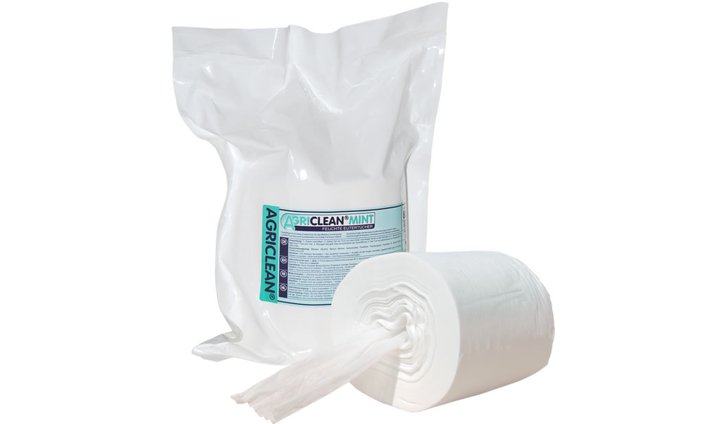 disposable pre-moistened teat wipes (dimensions of one wipe: 20 x 25 cm):